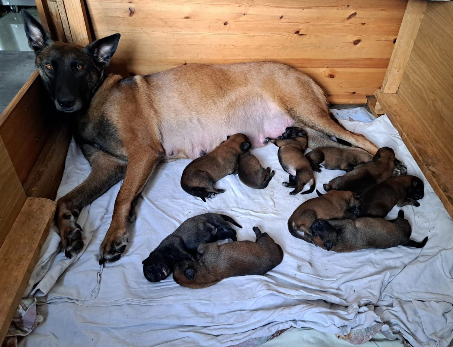 Vater: Taybo van de Berlex-Hoeve Mutter: Crazy del Telon de AceroRasse: Belgischer SchäferhundWurftag: 17.12.2025Anzahl Rüden: 6Anzahl Hündinnen: 4